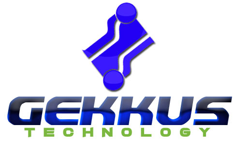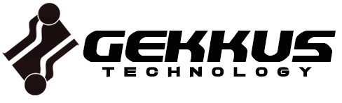 Logotipo para la empresa de móviles y tablets Gekkus Technology. Versión Blanco y negro para serigrafiar en los dispositivos.