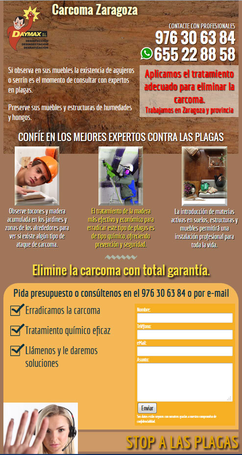 Página de aterrizaje creada para los tratamientos anti carcoma en Zaragoza.