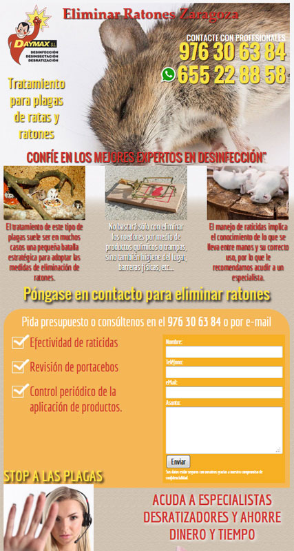 Responsive design para esta landing page para la empresa de desrratización en Zaragoza.