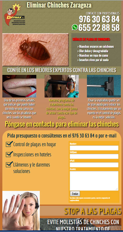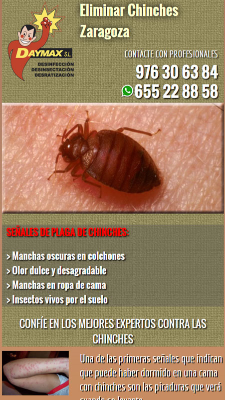 Landing page responsiva sobre el servicio de matar chinches en Zaragoza de la empresa Daymax (Zaragoza).