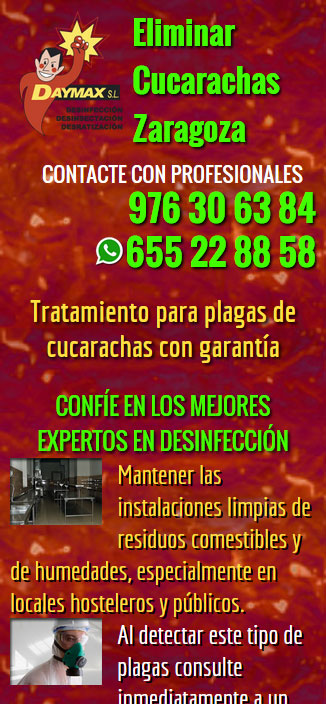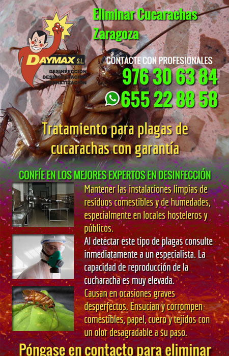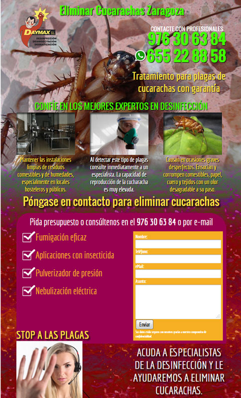 Para la empresa Daymax (Zaragoza), creamos esta landing con diseño responsive sobre eliminación de cucarachas en Zaragoza.