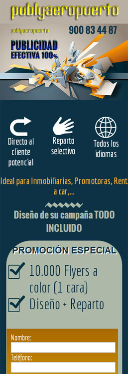 Página de aterrizaje adaptada a teléfonos móviles, tablets, PCs, Smart TVs... para una promoción de PublyAeropuerto (Málaga). Parte inferior.