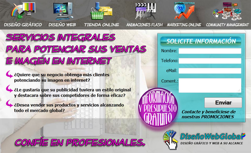 Landing Page para la campaña de publicitaria del pack promoción navidad 2014 de Diseño Web Global.
