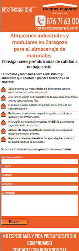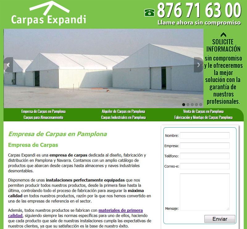 Micrositio web para la empresa Expandi (Carpas Pamplona), adaptado a smartphones y tablets.
