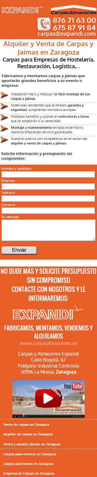 Microsite de 7 páginas para la empresa Carpas Zaragoza, dedicada a la venta y alquiler de Carpas y Jaimas (Zaragoza)