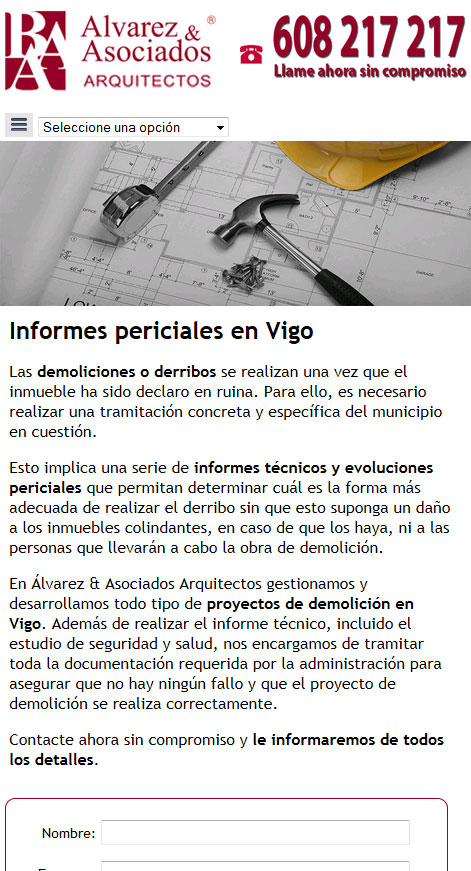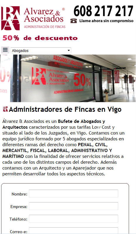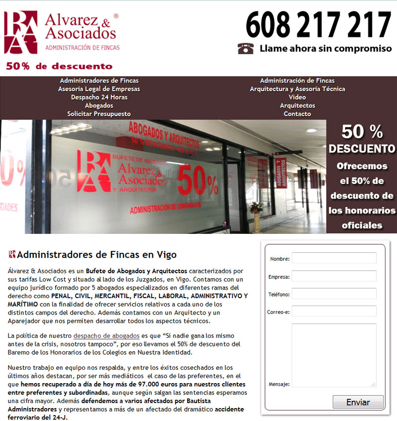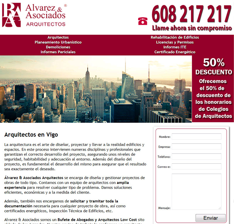 Micrositio para el Bufete Alvarez y Asociados, Arquitectos en Vigo (Pontevedra).