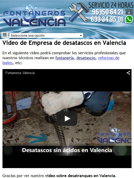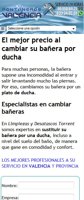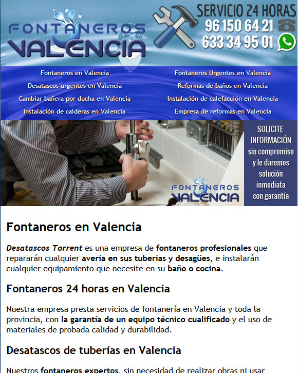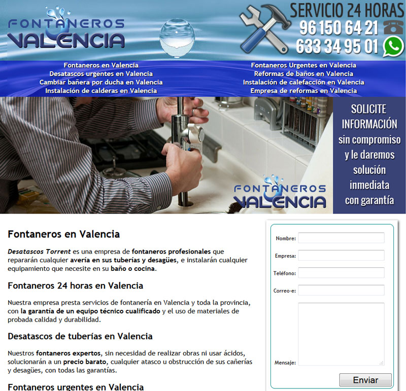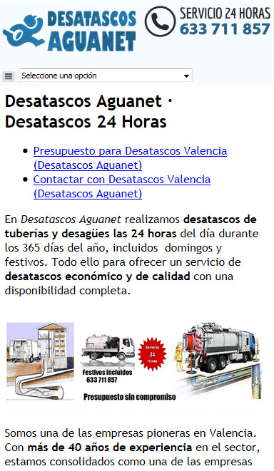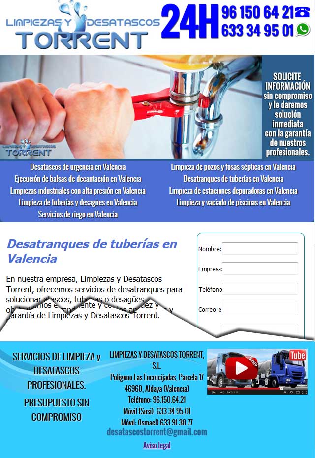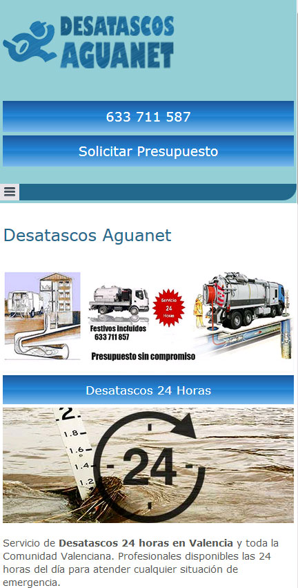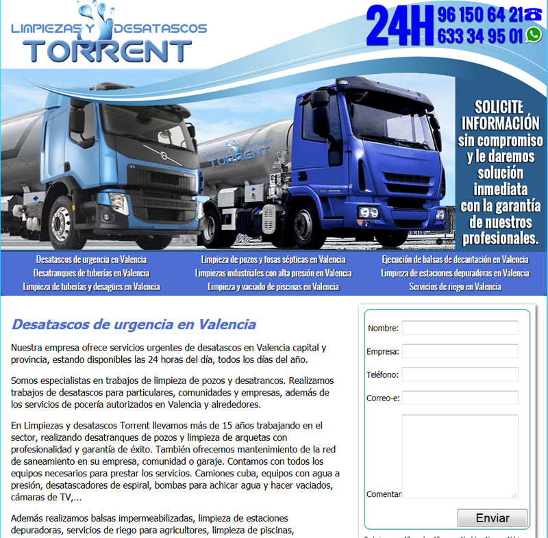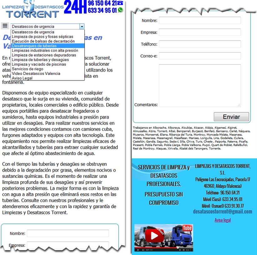 Micrositio ampliado de la empresa Desatascos Valencia Torrent (Aldaya, Valencia).
