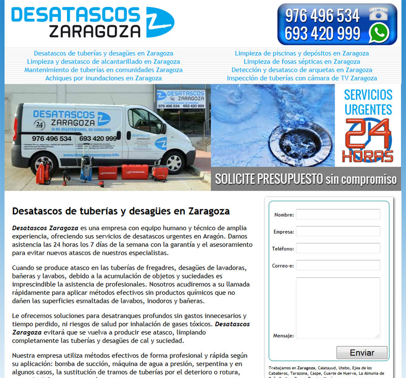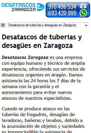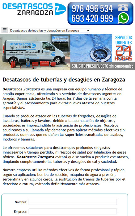 Página web creada para la empresa Desatascos Zaragoza (Zaragoza).