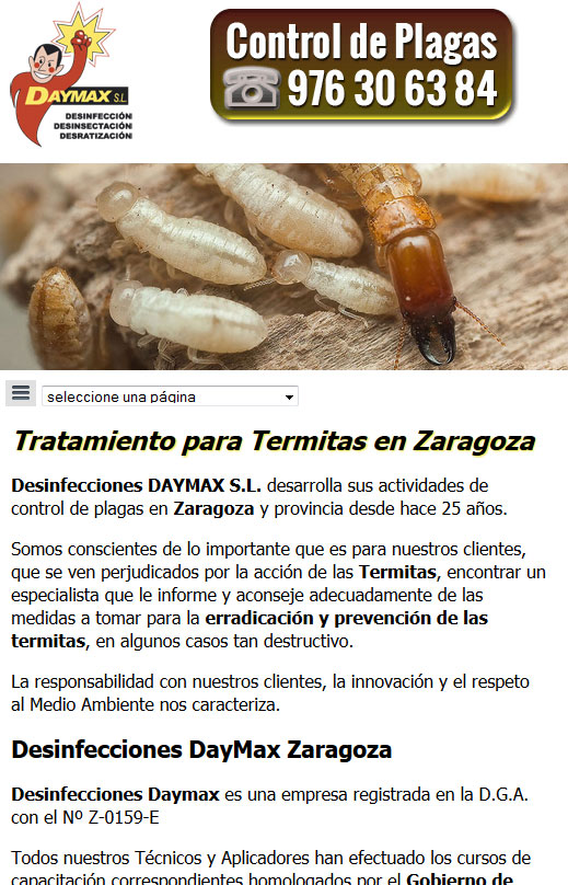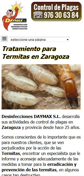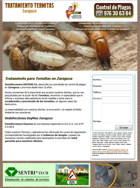 Micrositio web creado para el servicio de eliminar termitas en Zaragoza de la empresa Desinfecciones DayMax (Zaragoza).