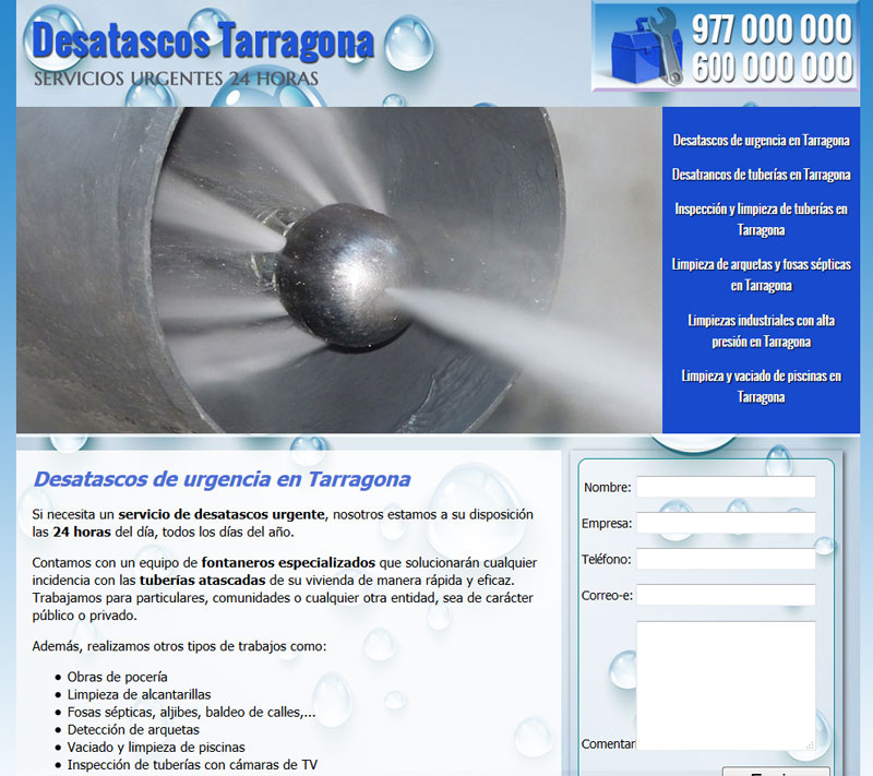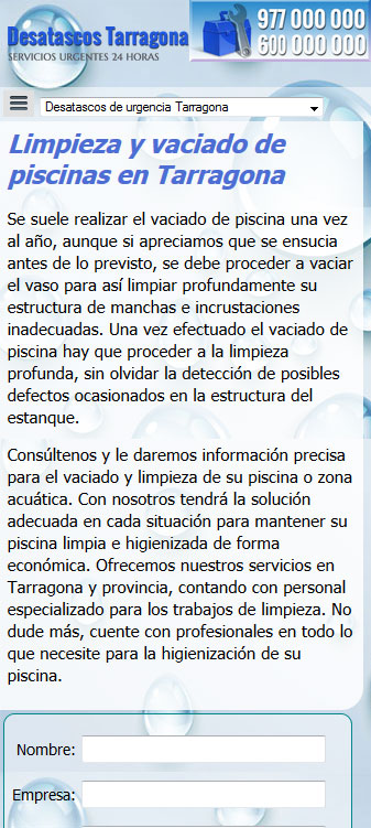 MicroSitio web adaptado a móviles y tabletas para la empresa Desatascos Tarragona (Tarragona).