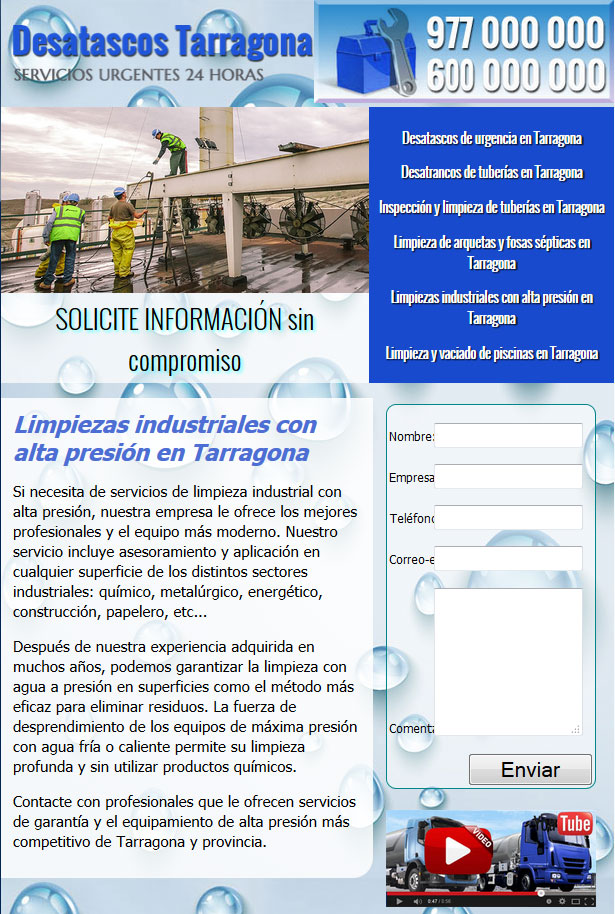 Micrositio para la empresa AEM Desatascos Tarragona (Tarragona), dedicada a los desatrancos y limpieza de tuberías, fosas sépticas...
