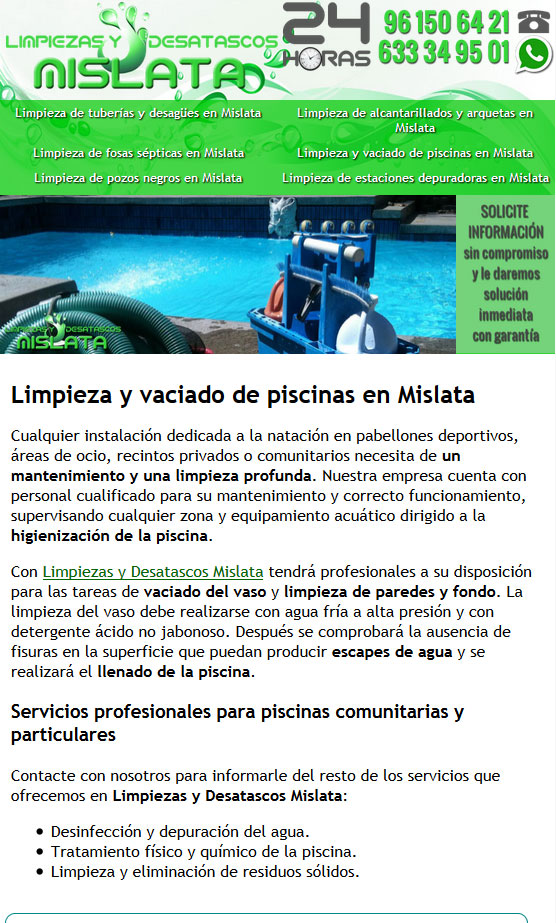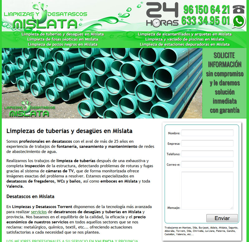 Sitio web creado para la empresa Limpiezas y Desatascos Mislata (Valencia).