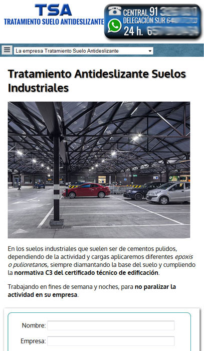 Micrositio web para la empresa Tratamiento de Suelos Antideslizantes (Madrid).