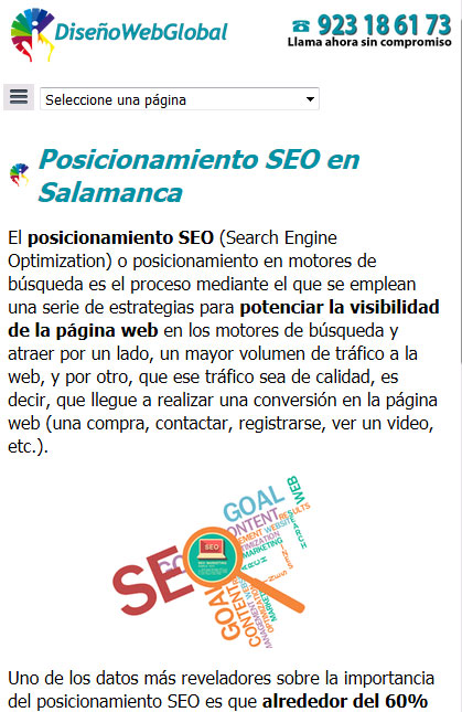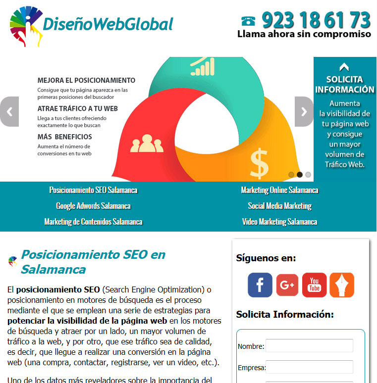Micrositio para potenciar los servicios de Posicionamiento Web SEO, marketing online, Google Adwords, redacción de contenidos, etc, para la empresa Diseño Web Global.